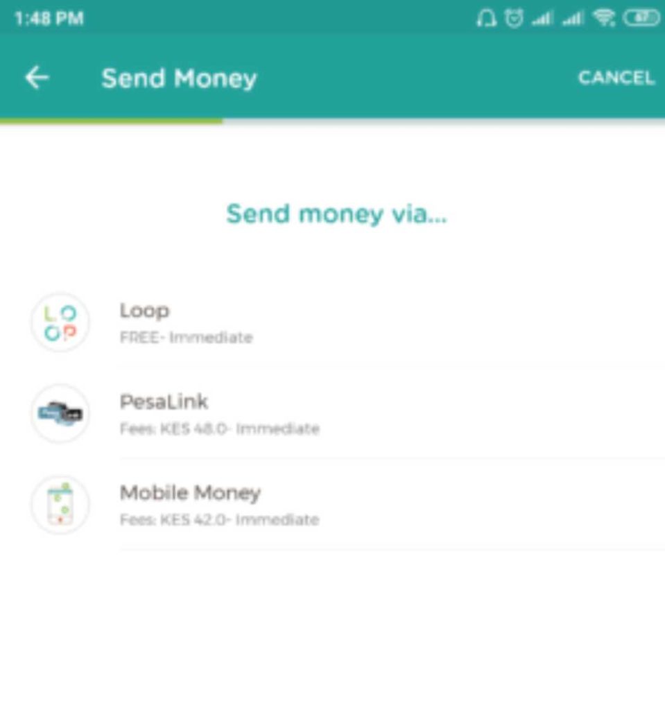 – PESALINK ( recipient will receive funds immediately ) – charges KES 48